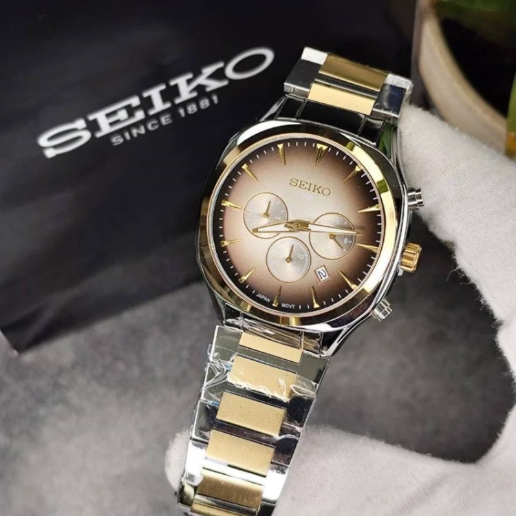 ساعت مردانه سیکو وی ای پی کرنو دورنگ طلایی نقره ای صفحه قهوه ای